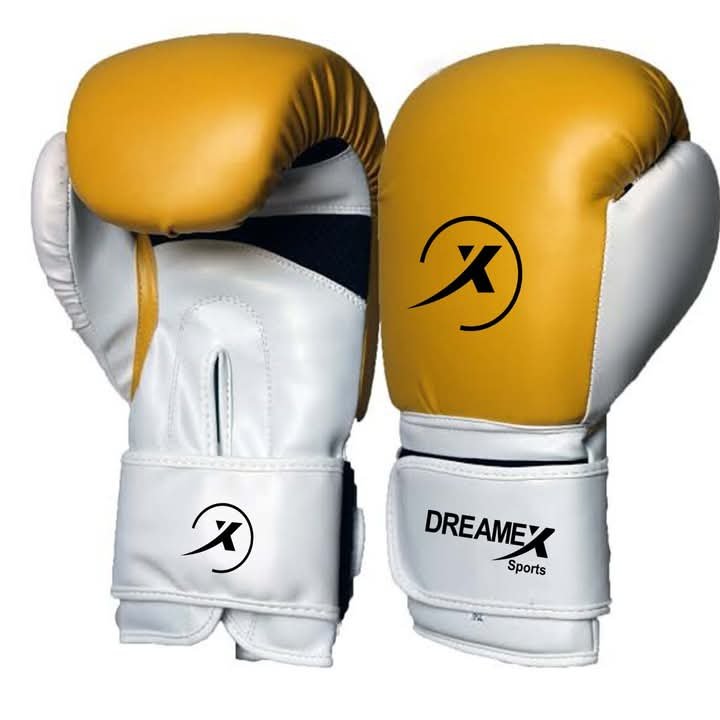 The DREAMEX TX5 Gloves are designed to elevate your fighting experience and enhance your performance, delivering the perfect balance of protection, comfort, and style. boxing gloves Dreamex with laces, Dreamex leather gloves, WHITE/YELLOW